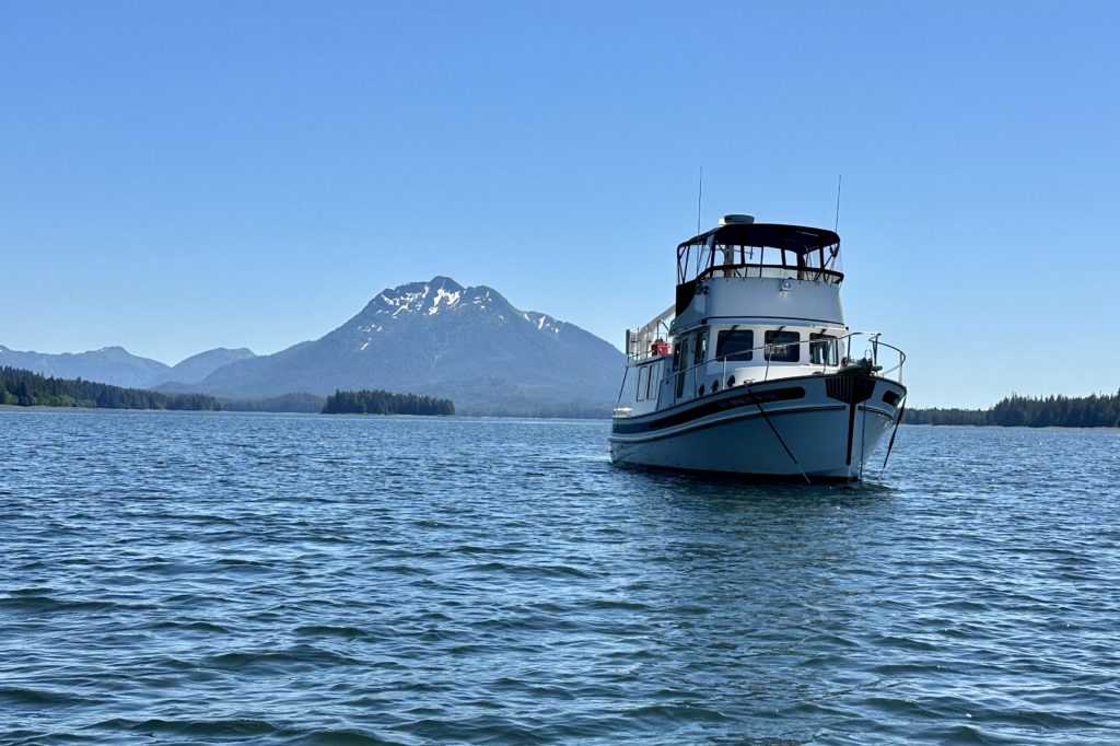 We left Petersburg this morning at 9:00 am. Last night we had a dock cocktail hour with several of our friends, Barb and Rob from “Harmony Bay”; John and Jeri from “Katessa”; and new friends who arrived on their 42 Nordic Tug “Noeta.” Marlene and I both commented on how much fun we have had in Petersburg and how friendly a place it is. We will definitely be back.